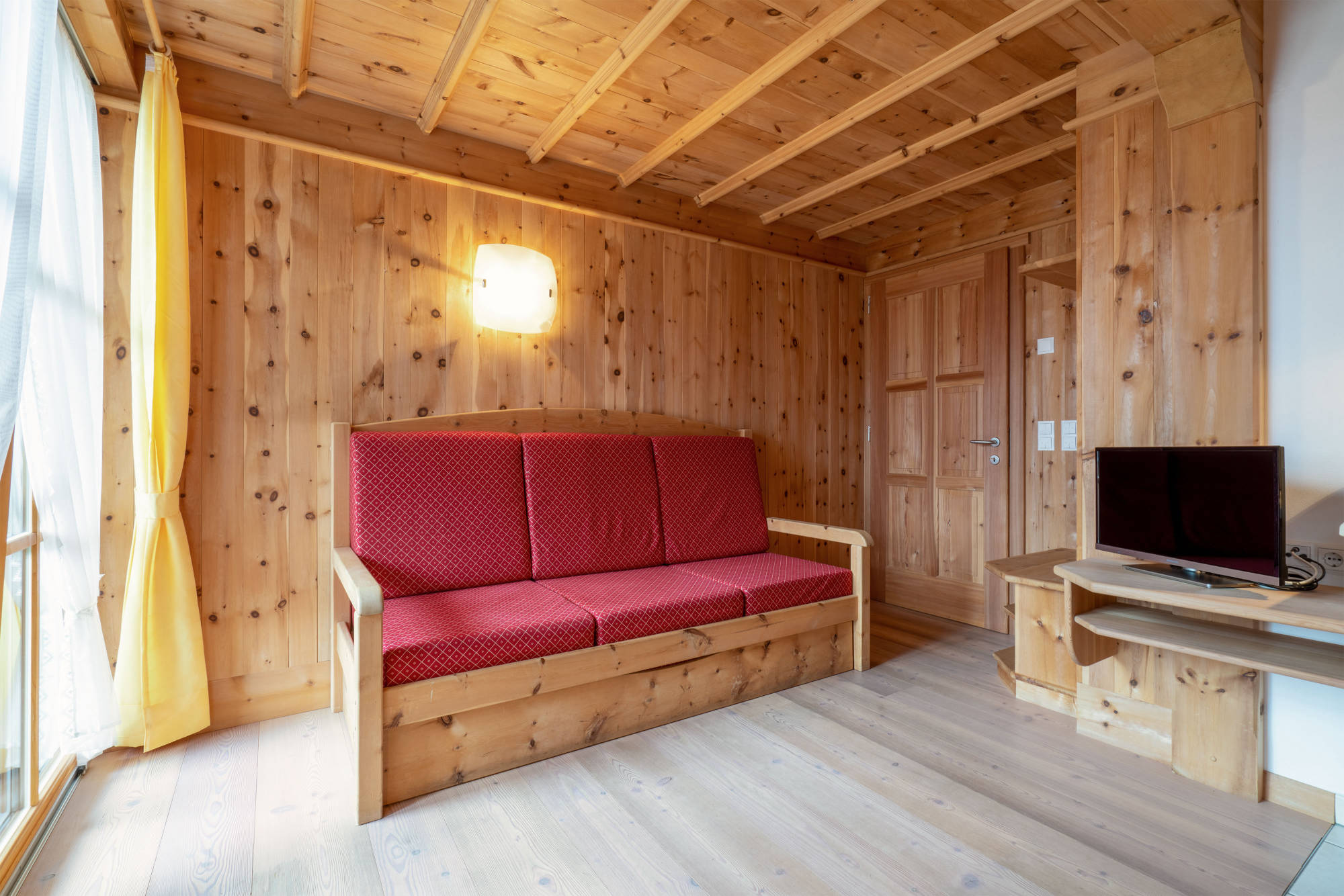 The furnishings are made entirely of Swiss stone pine and the sleeping systems are orthopedic.